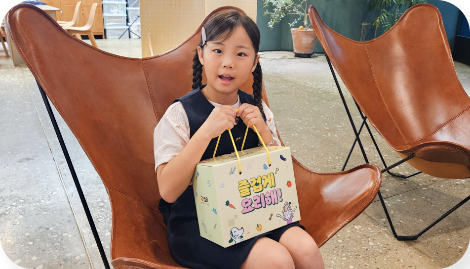 아이들이 좋아하는 맛과 영양을 담아, 건강에도 좋고 스스로 해냈다는 뿌듯함을 느낄 수 있도록 겉절이, 멸치볶음, 계란밥찜 총 3가지 메뉴를 준비했어요😊 칼과 불 사용은 최소화해 안전하게 구성했지만, 보호자가 함께 요리하며 즐거운 시간을 보내는 걸 추천 드려요. 아이들에게 요리가 재미있는 놀이가 될 수 있도록 했답니다!